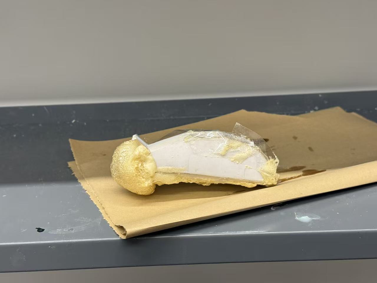 A foam core was first created to establish the overall volume and proportions of the mouse. This core acts as the structural base, allowing the design to remain lightweight while providing a foundation for further refinement. The shape of the core was simplified to focus on the primary form before adding surface detail.