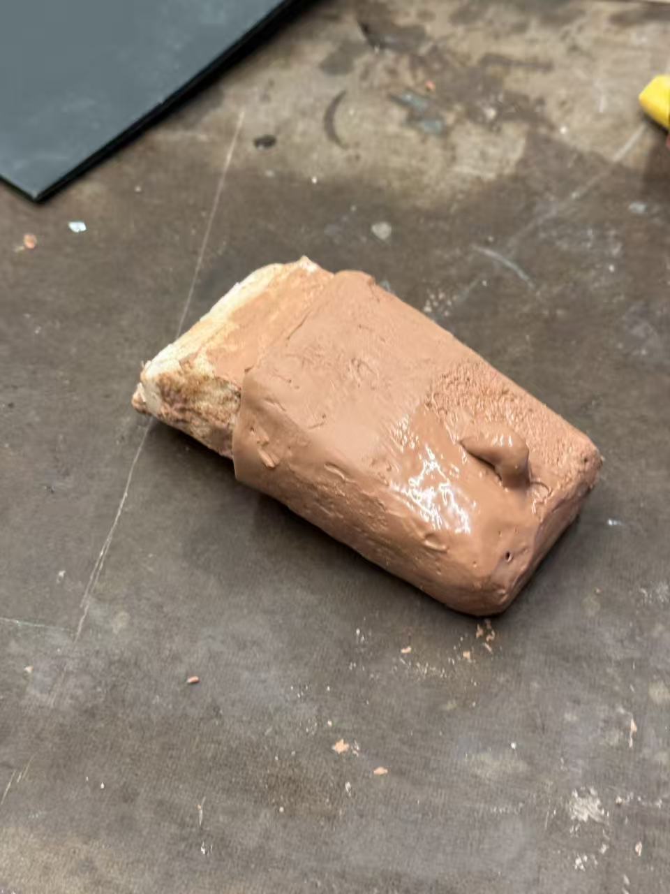 Modeling clay was then applied as a surface layer, enabling precise sculpting of curves, edges, and transitions. This stage allowed for iterative adjustments based on physical interaction, with continuous refinement of the grip and contour. The clay surface captures the intended feel and usability of the final product.