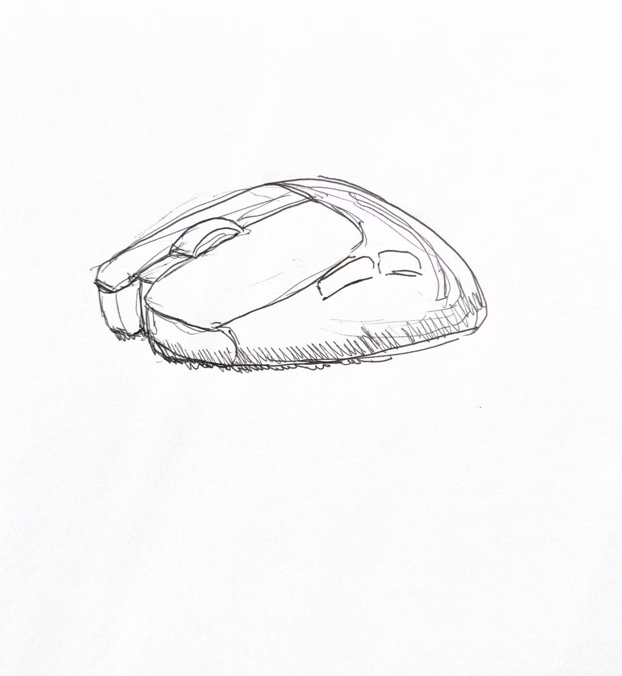 The design process began with sketching multiple concepts that explored different shapes, sizes, and grip styles. Emphasis was placed on how the hand rests on the mouse, including finger placement, palm support, and overall comfort. A final concept was selected based on its balance between ergonomic fit and clean form.